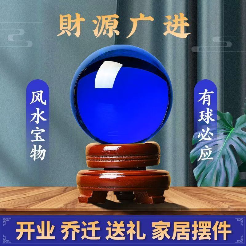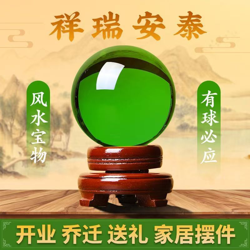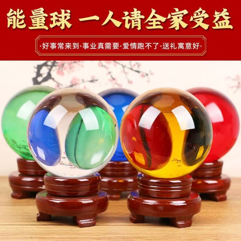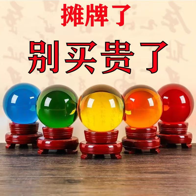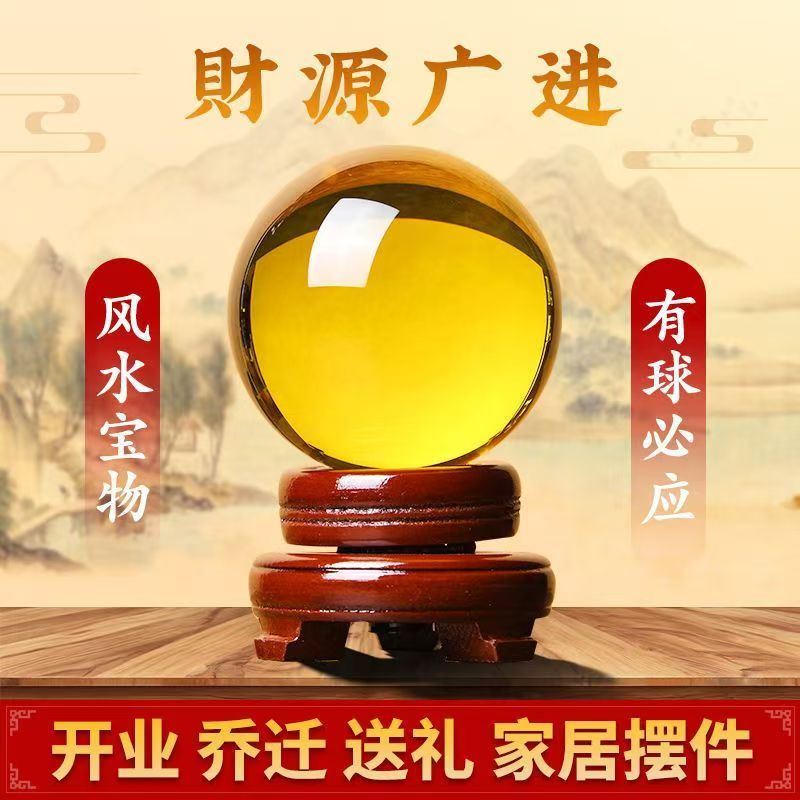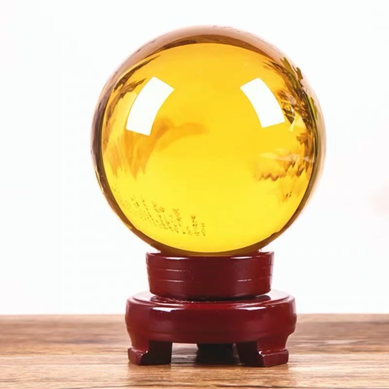 黃水晶球擺件七彩水晶玻璃球大小號客廳家居飾品喬遷送禮案頭擺件