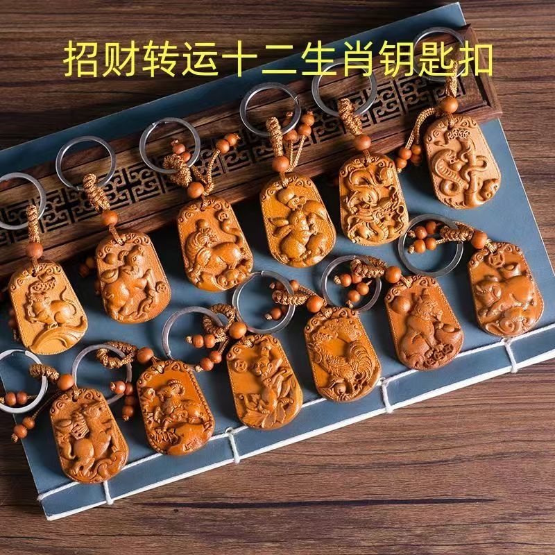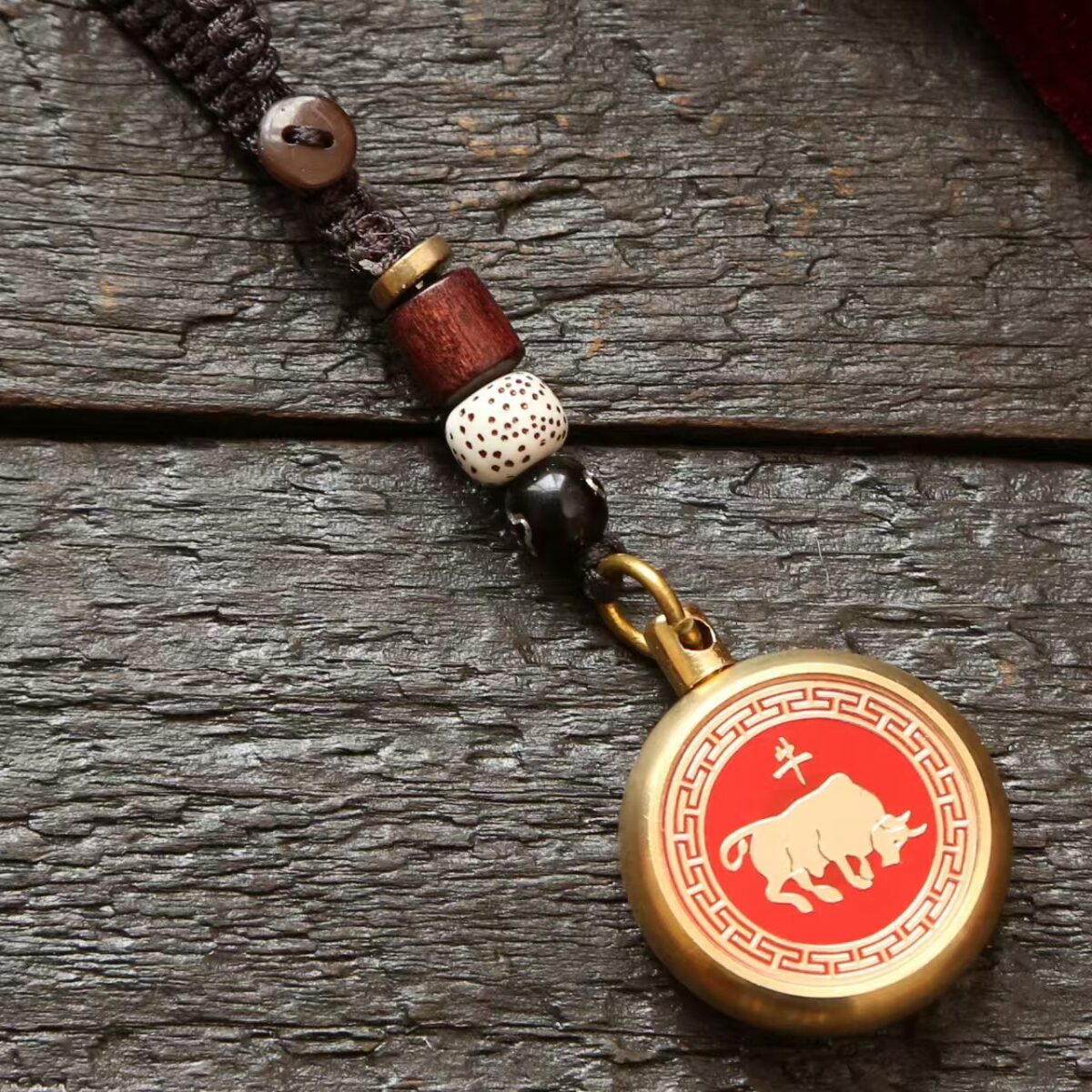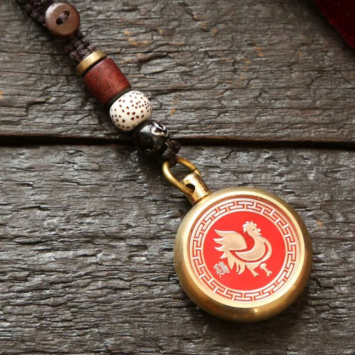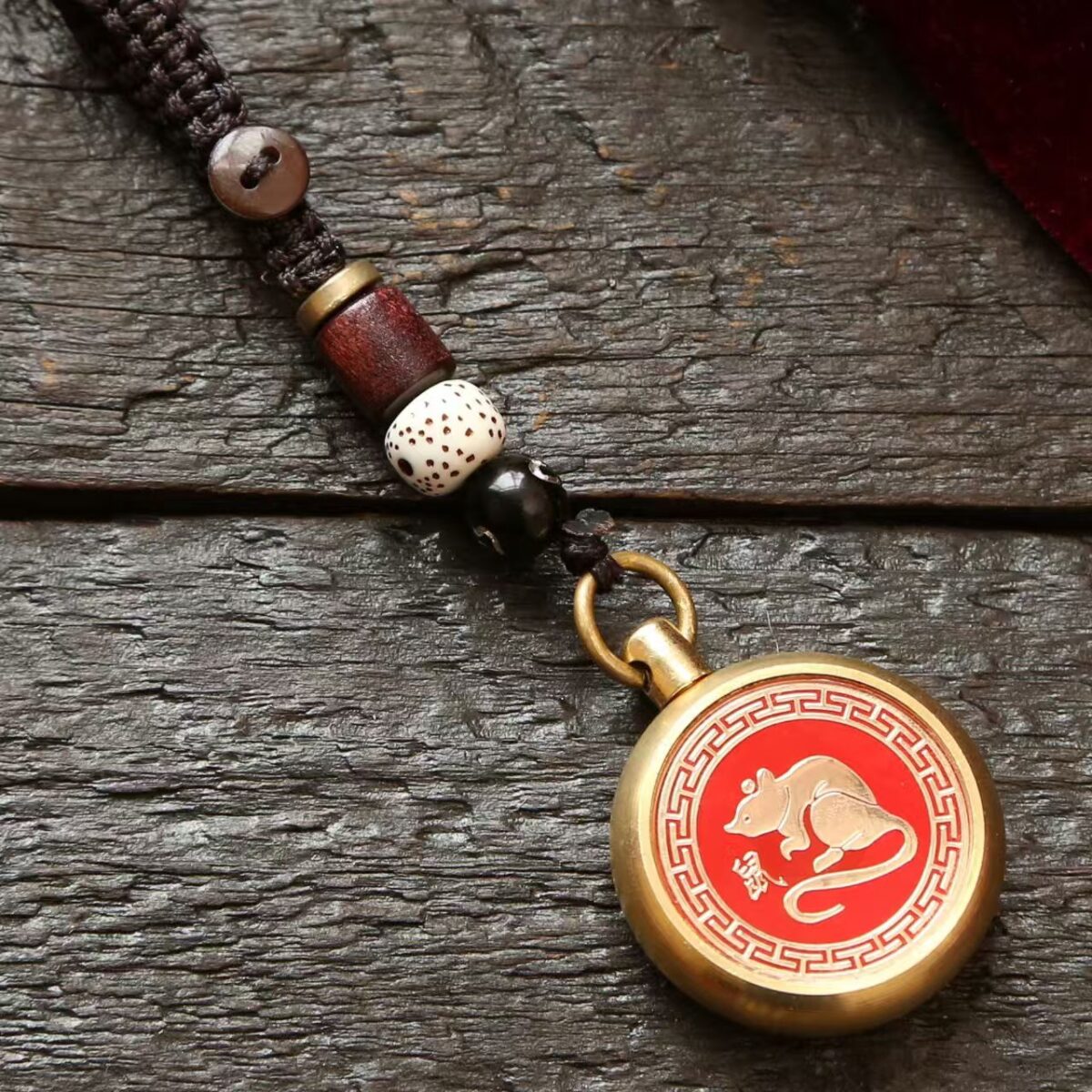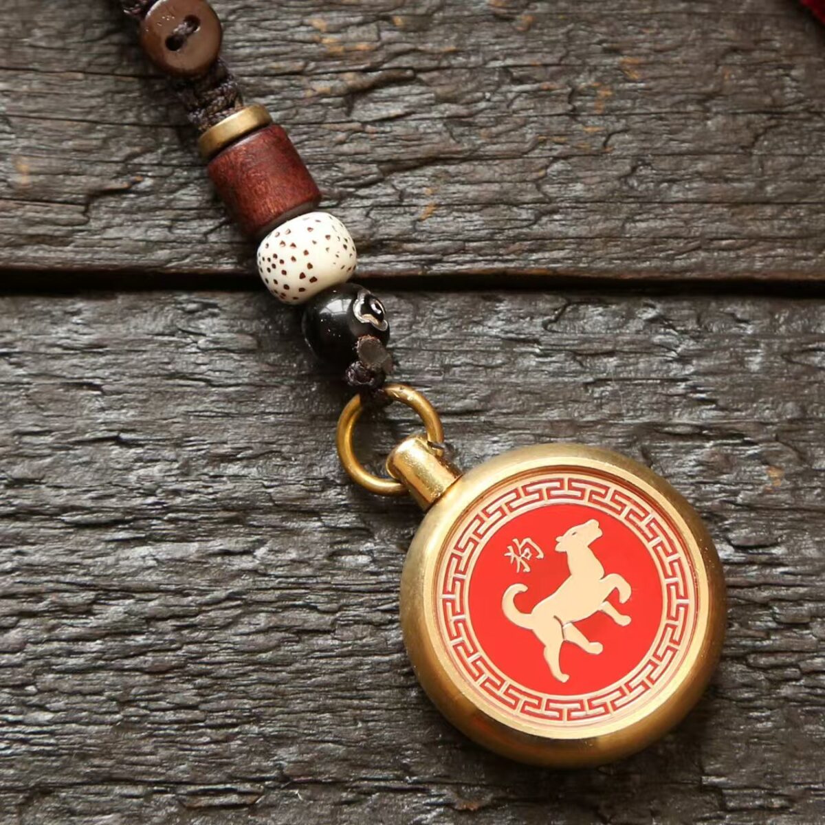 黃銅十二生肖中國紅轉轉招財進寶鑰匙扣吊墜復古轉運轉錢掛飾