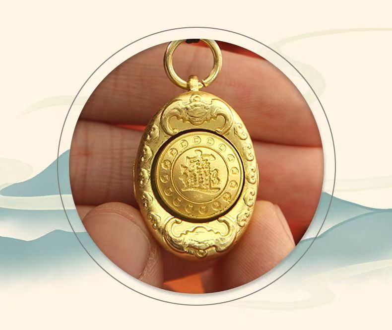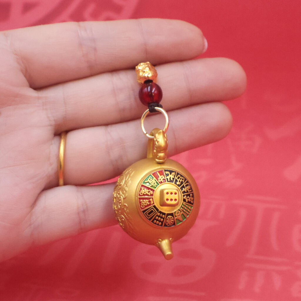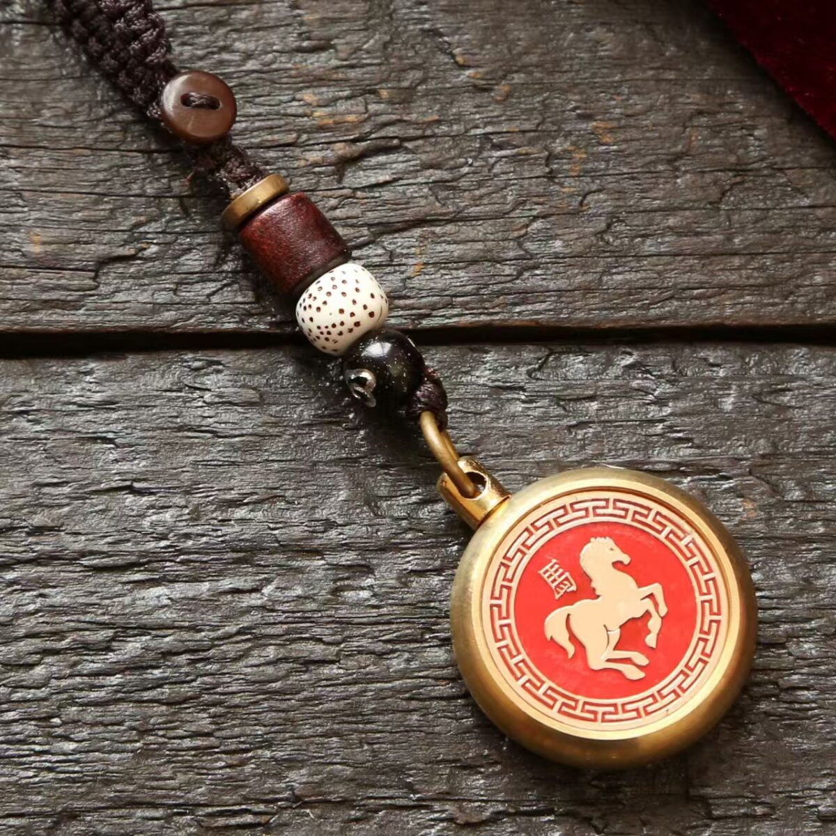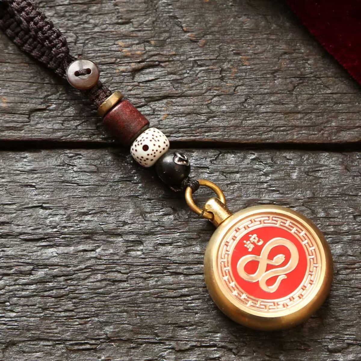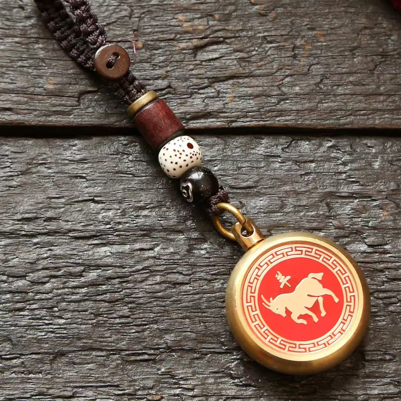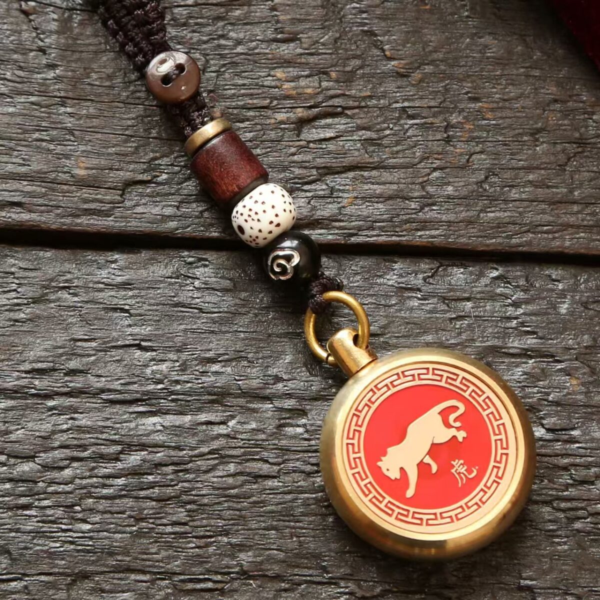 黃銅十二生肖中國紅轉轉招財進寶鑰匙扣吊墜復古轉運轉錢掛飾