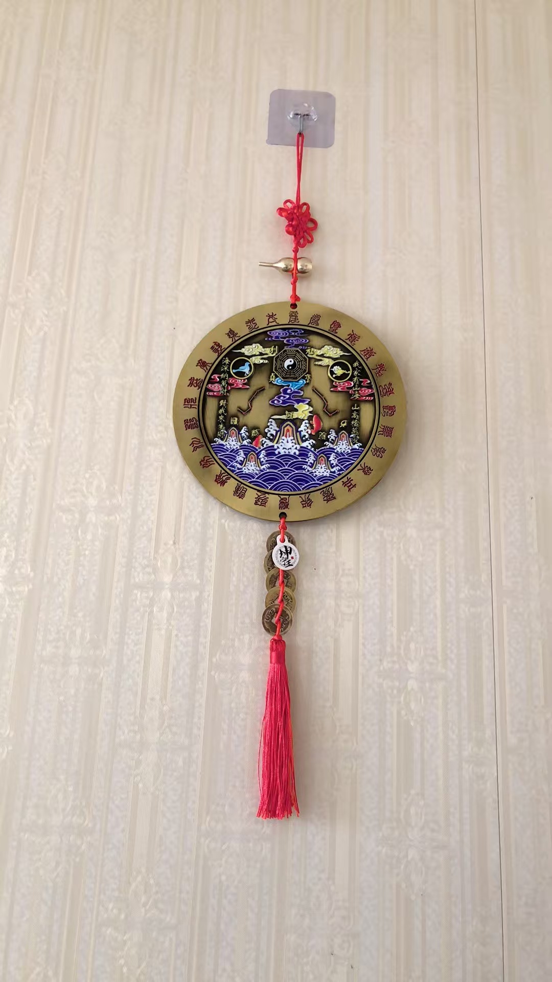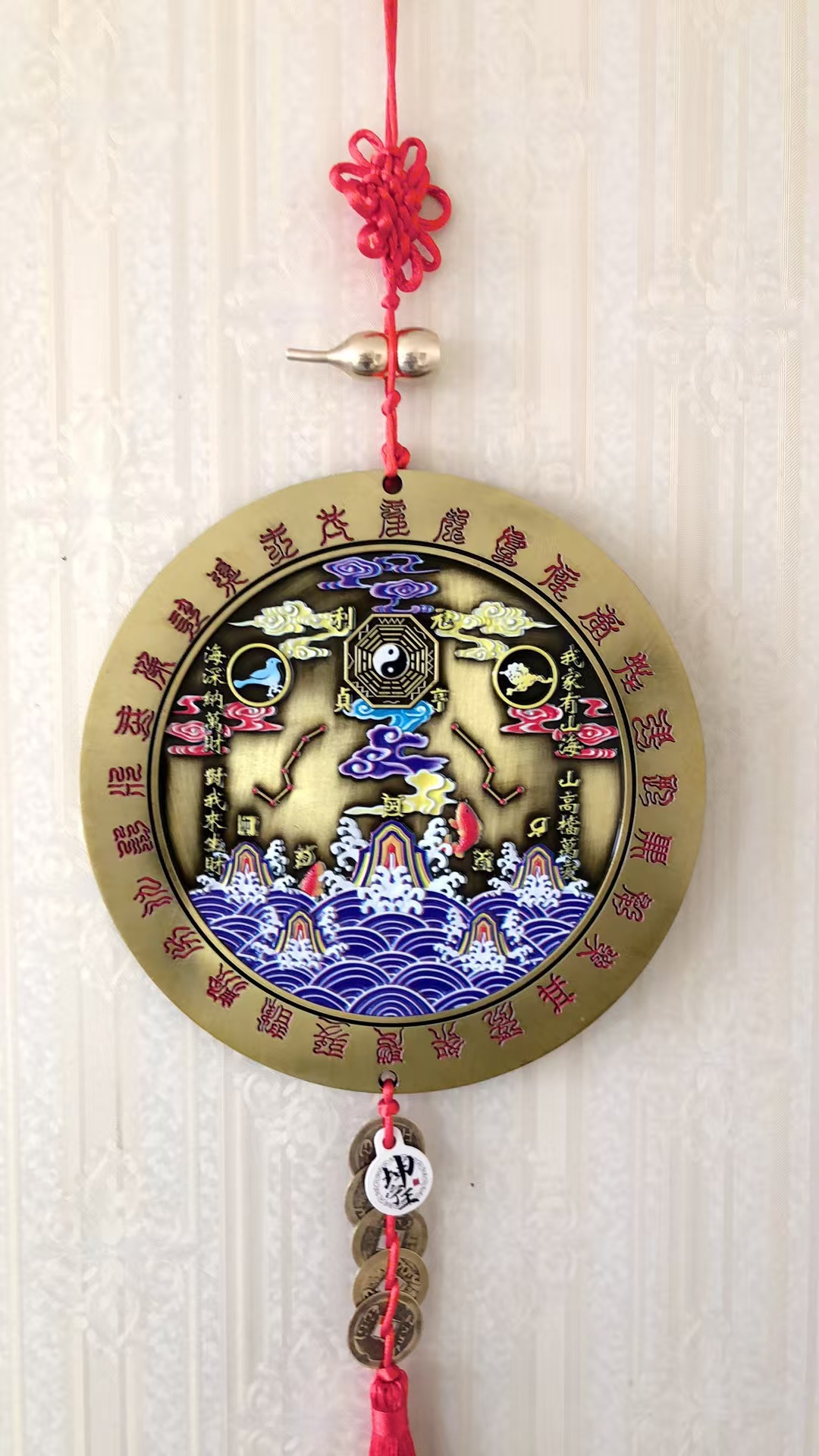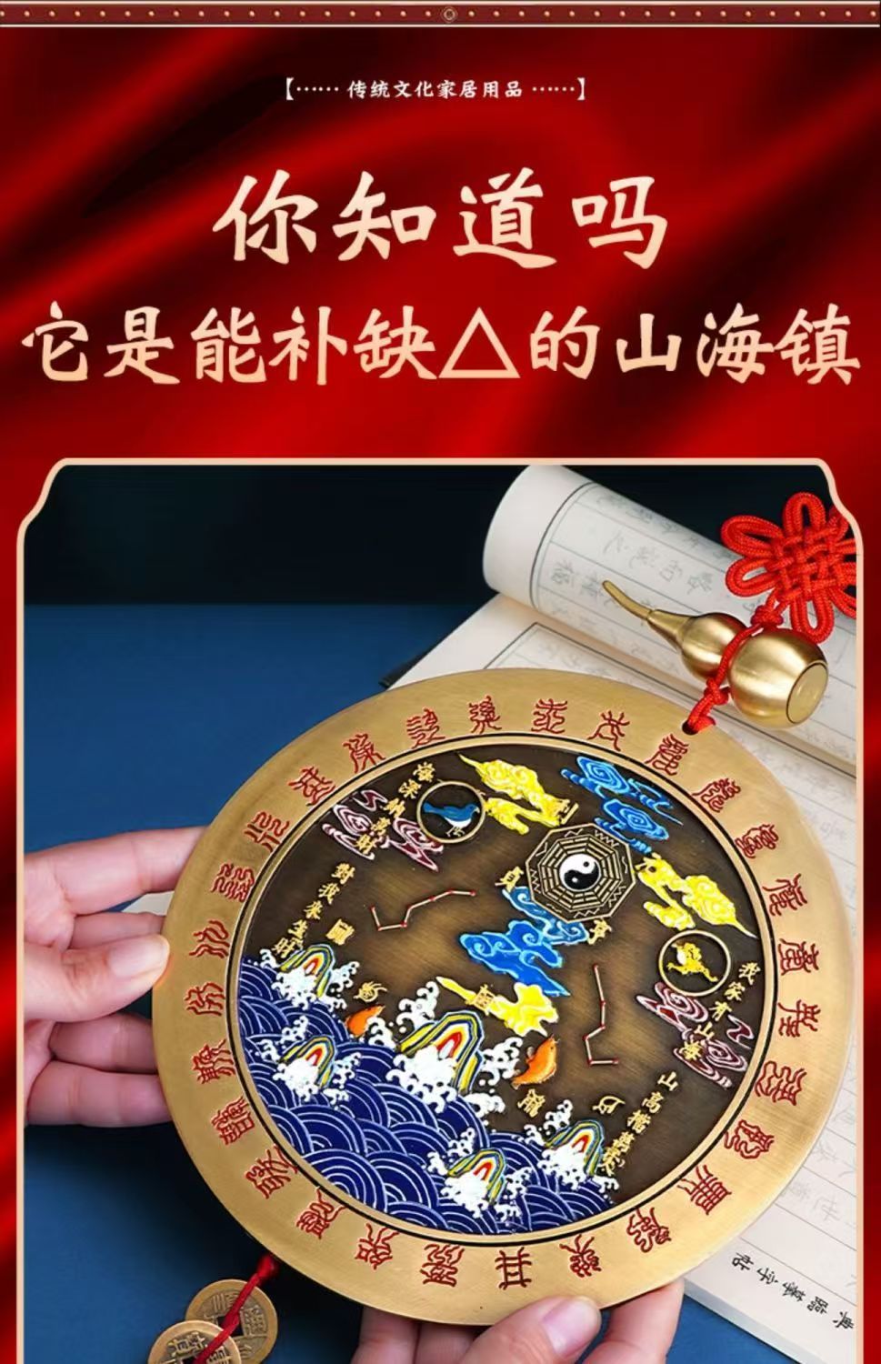 山海鎮室內擺件麒麟山海鎮桃木陽臺八卦鏡入戶門凸鏡室外掛件(鎮宅 化煞 納福)