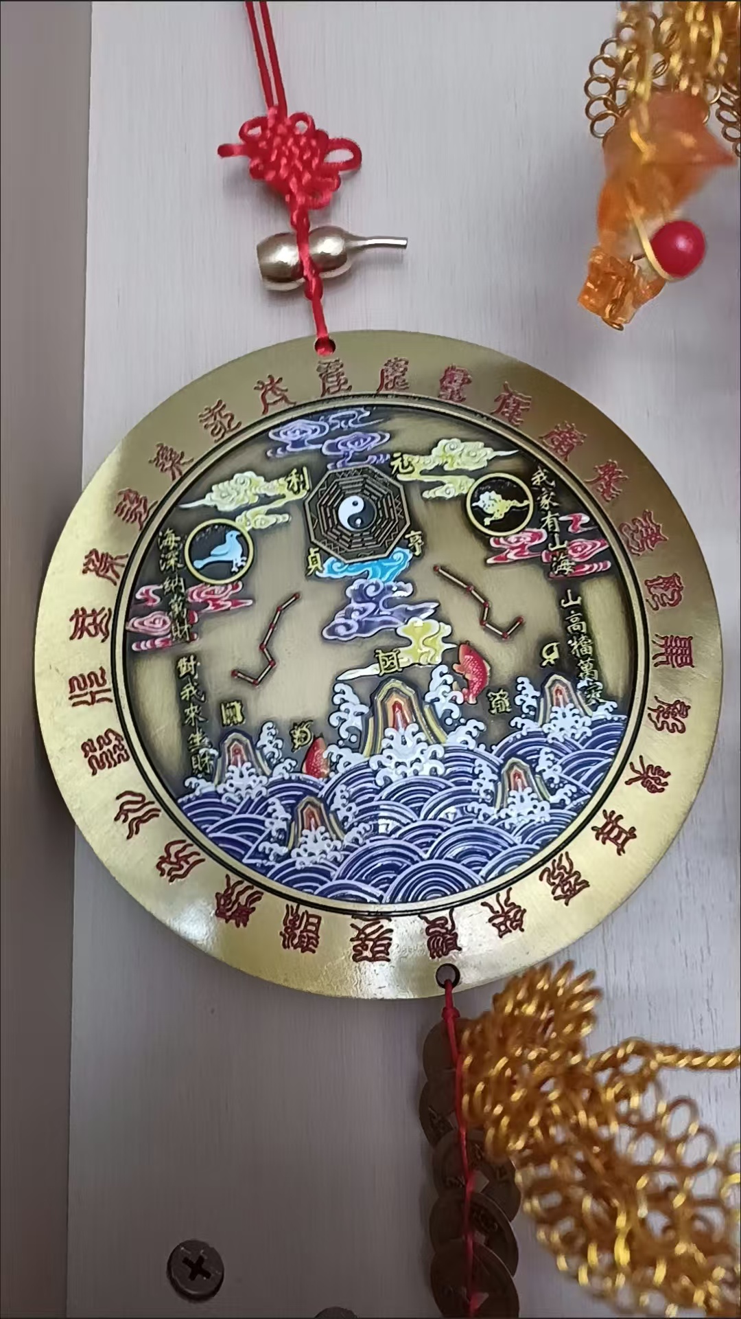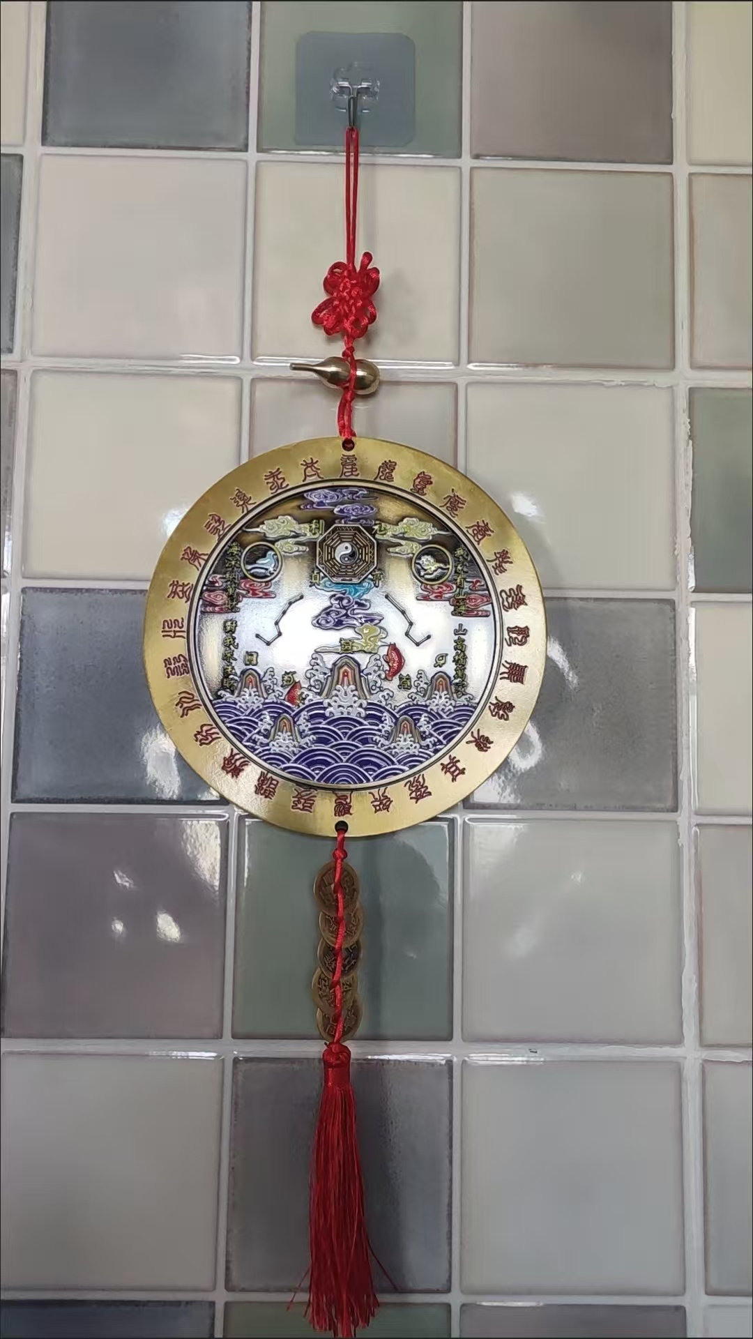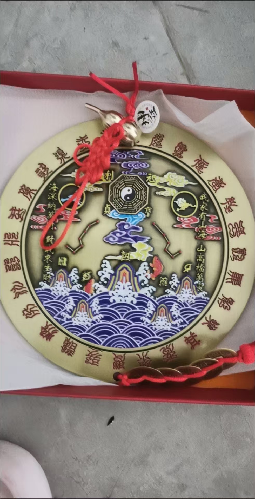山海鎮室內擺件麒麟山海鎮桃木陽臺八卦鏡入戶門凸鏡室外掛件(鎮宅 化煞 納福)